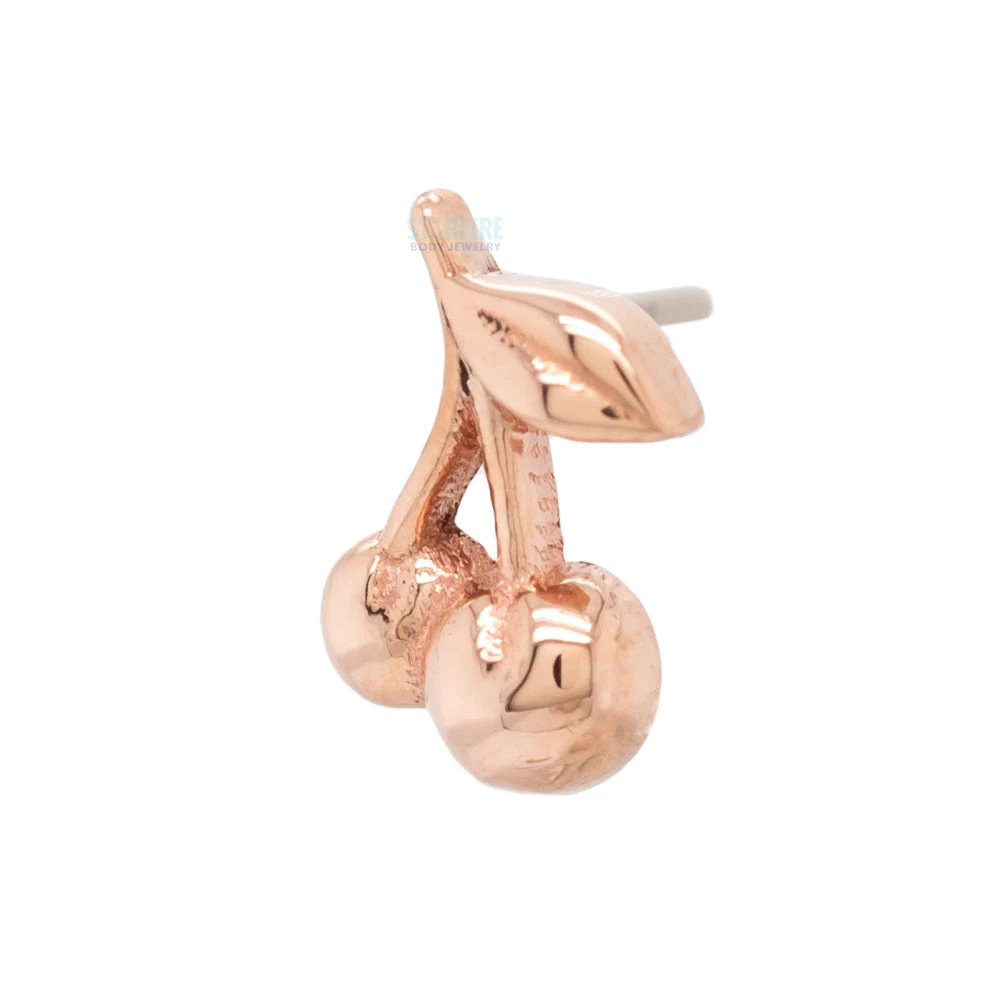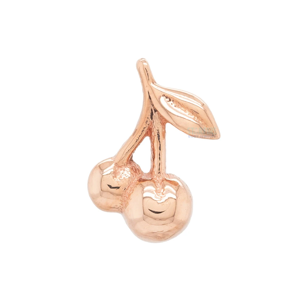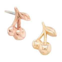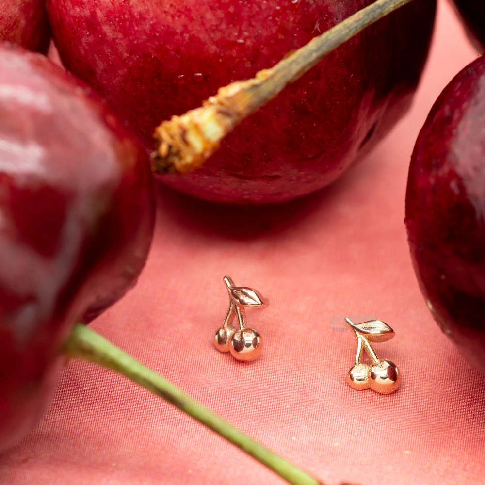Whether you’re a fan of the naughty fruit because of its sometimes sweet or tart flavor in Shirley Temples, black forest cake, and ice cream sundaes… or simply love cherry bomb mufflers—this piece was made just for you. It features a two dangling cherries held together by a stem and complemented by a single leaf adornment.