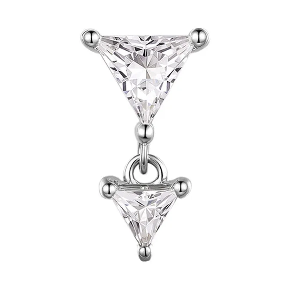 - 8mm x 4.2mm threadless end with (1) _mm Trillion Cut CZ in Prong’s & (1) _mm Trillion Cut CZ in Prong’s on a dangle