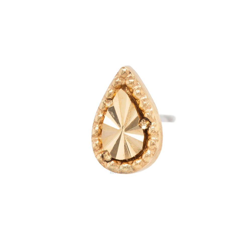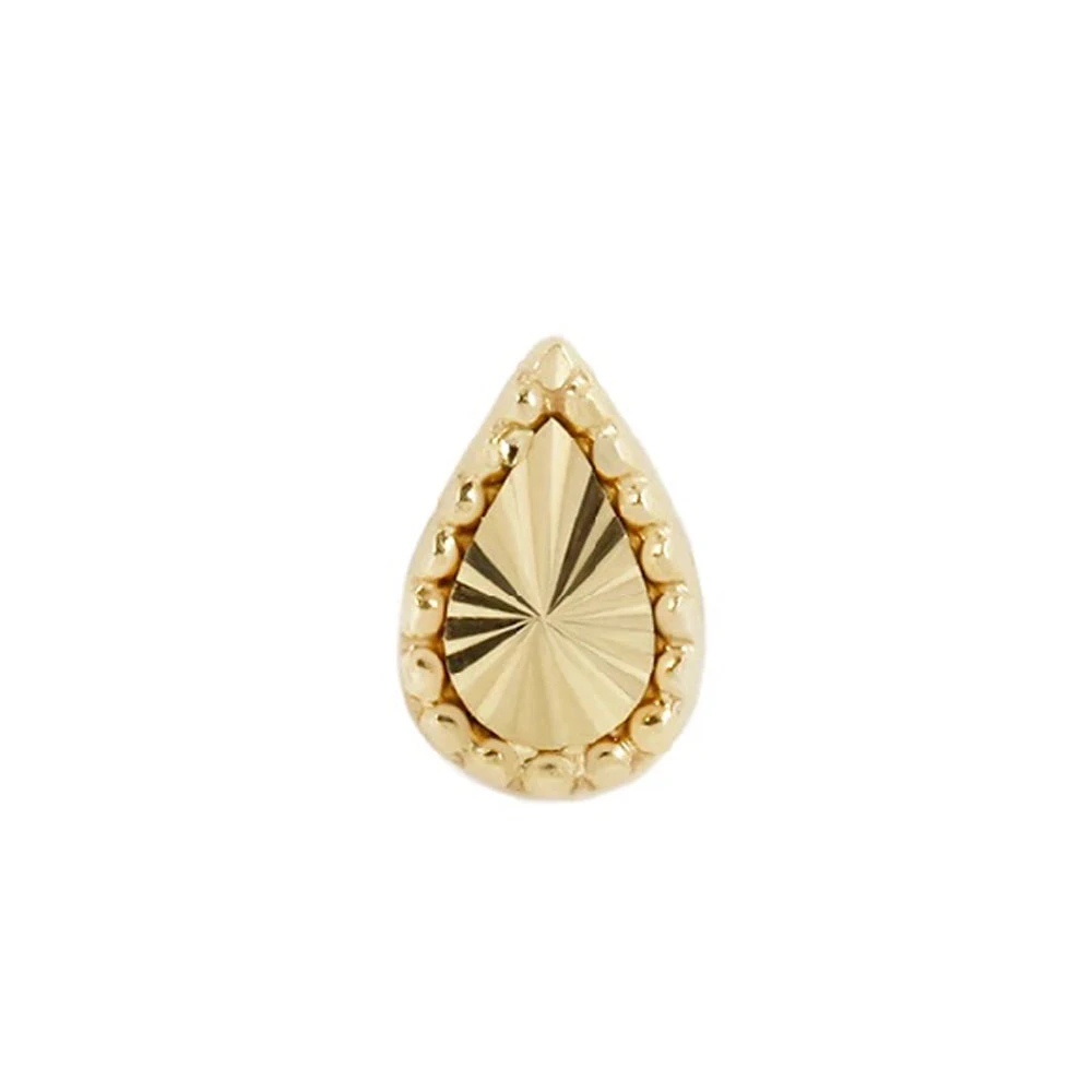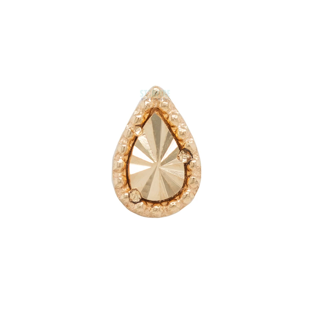 Not only is this pear pleated, but it is a beaded millgrain teardrop!