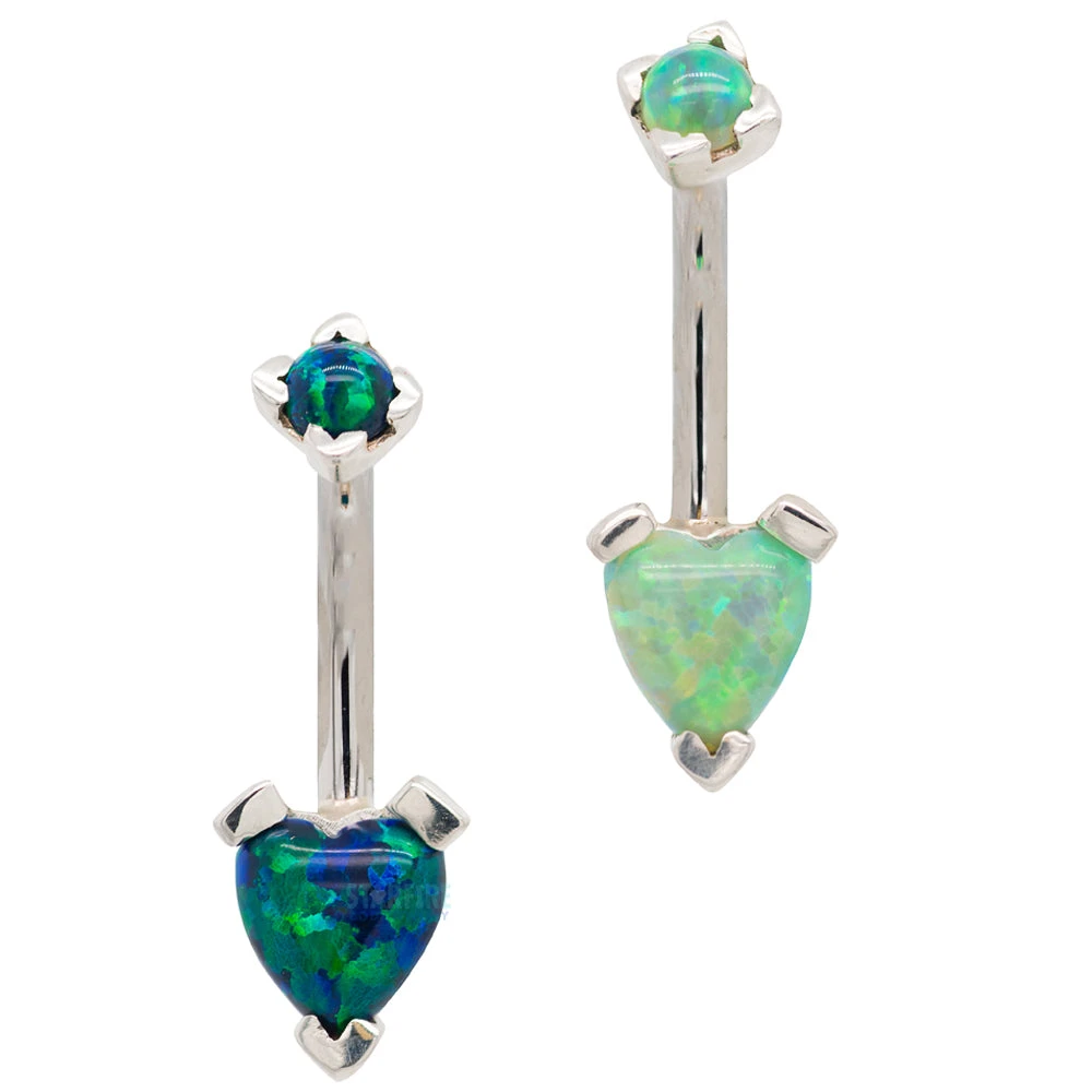 - 6mm fixed bottom heart opal with 3mm round opal threaded top