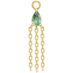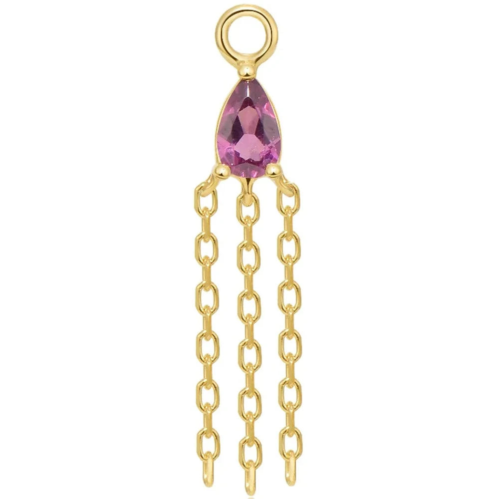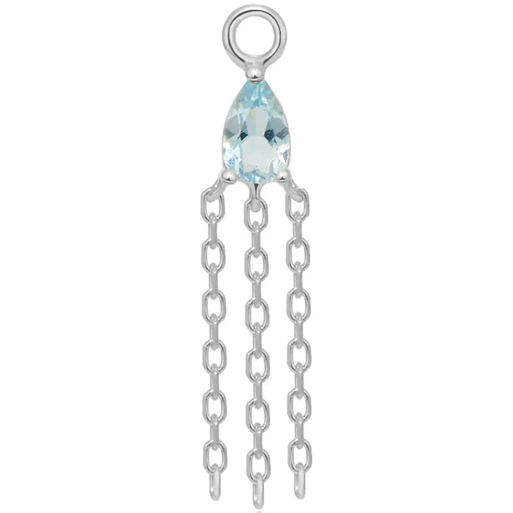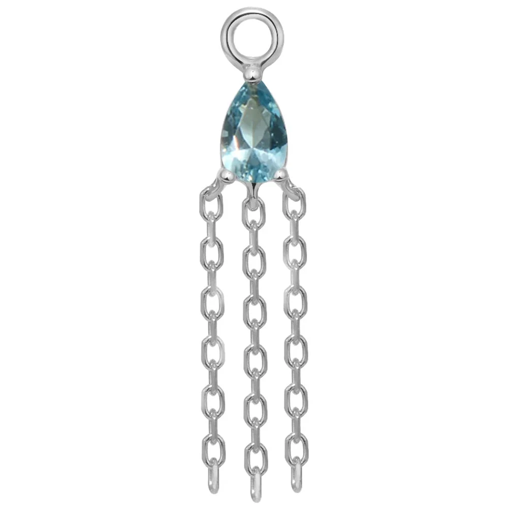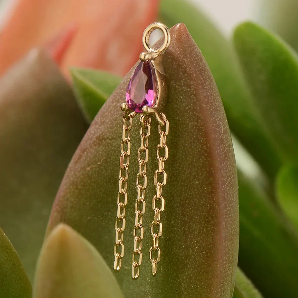- 17mm x 3mm charm with (1) _mm x _mm Pear Gemstone in Prong’s with (3) chain dangles