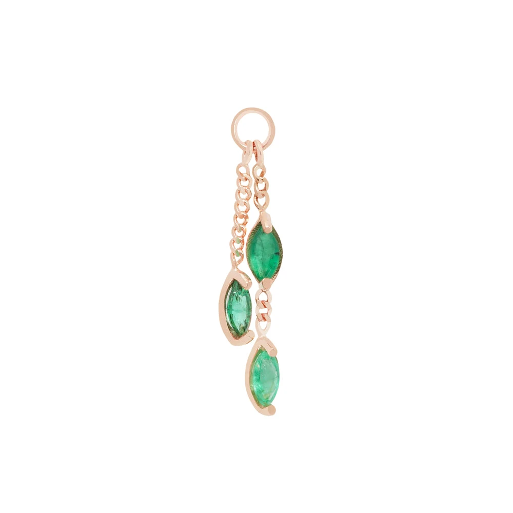 The “West Marin” features green marquise-cut gemstones dangling on a curb chain charm that make it the perfect piece to accessorize with. It looks like emeralds are cascading down like a waterfall.